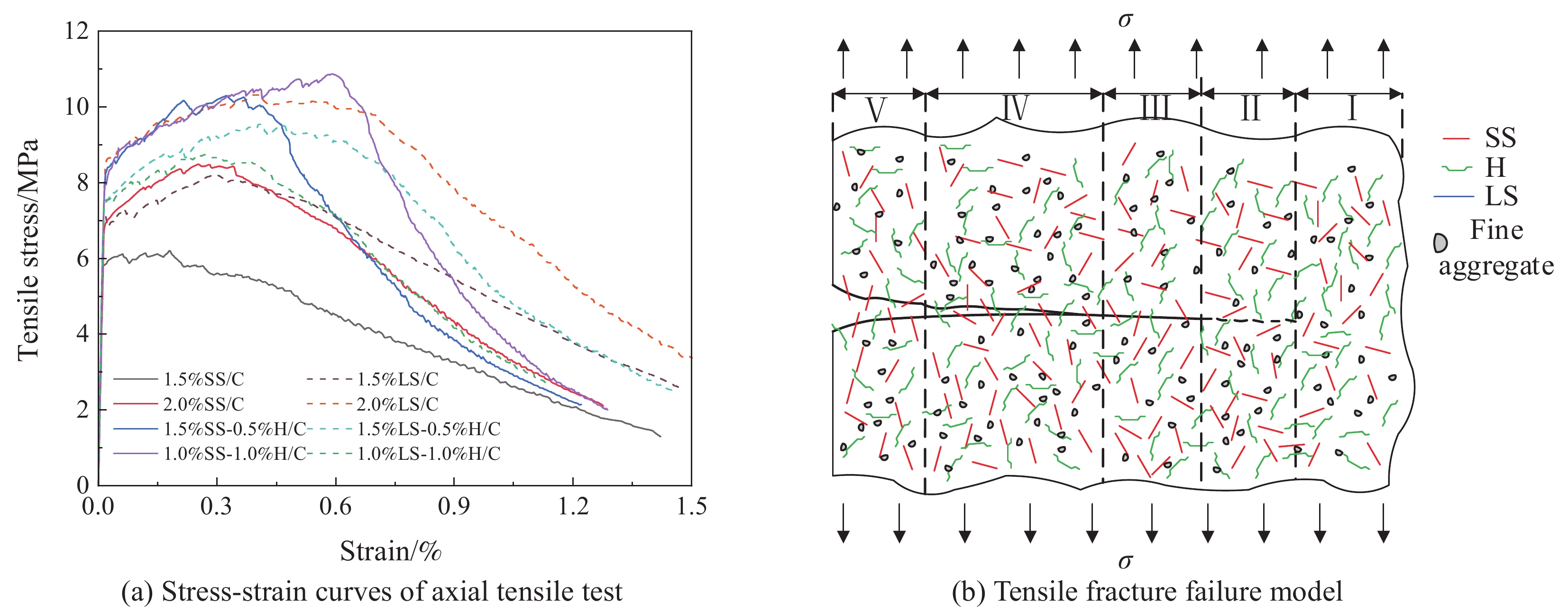 混杂钢纤维超高性能混凝土轴拉力学性能及本构模型