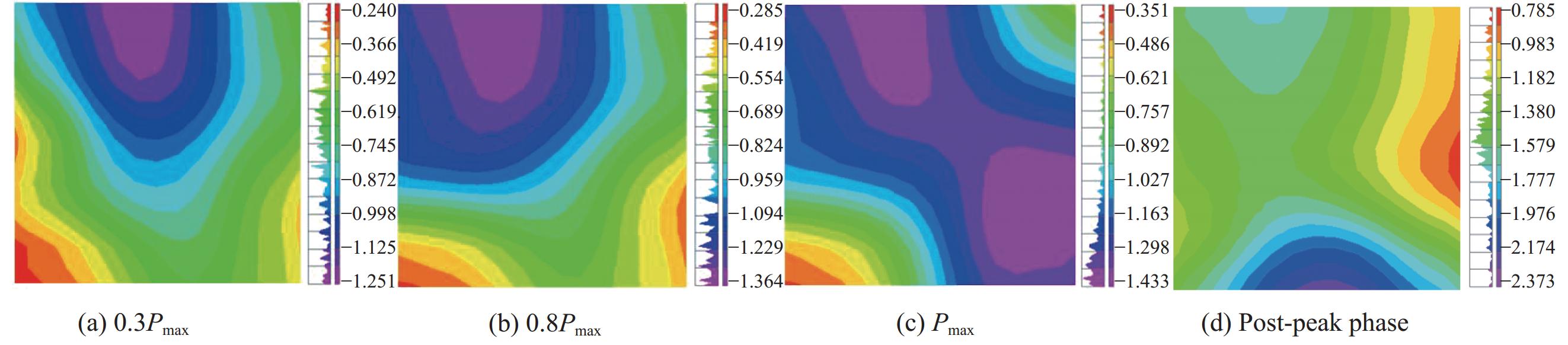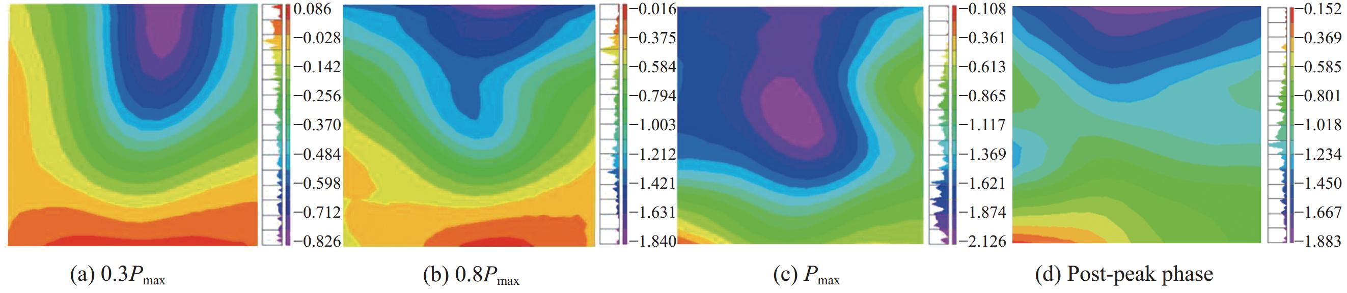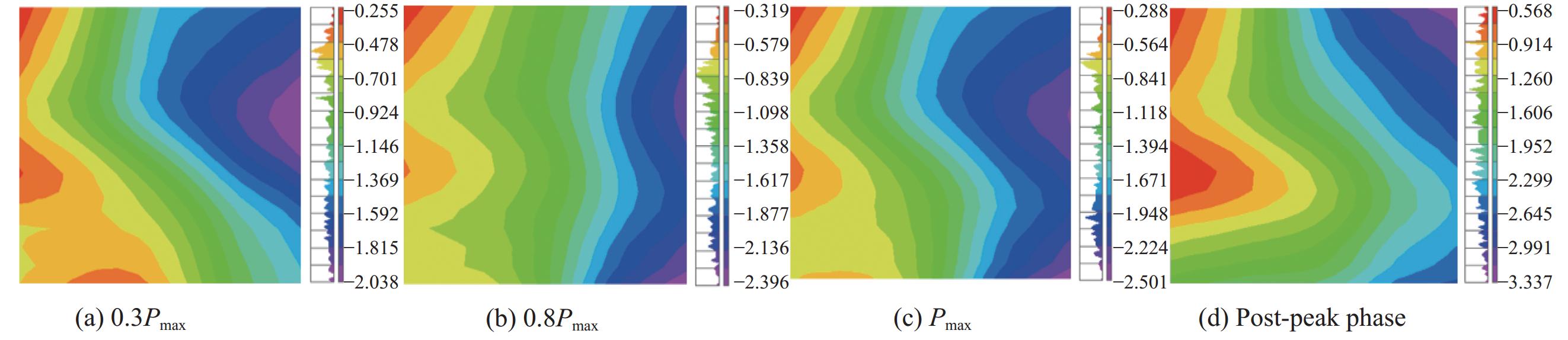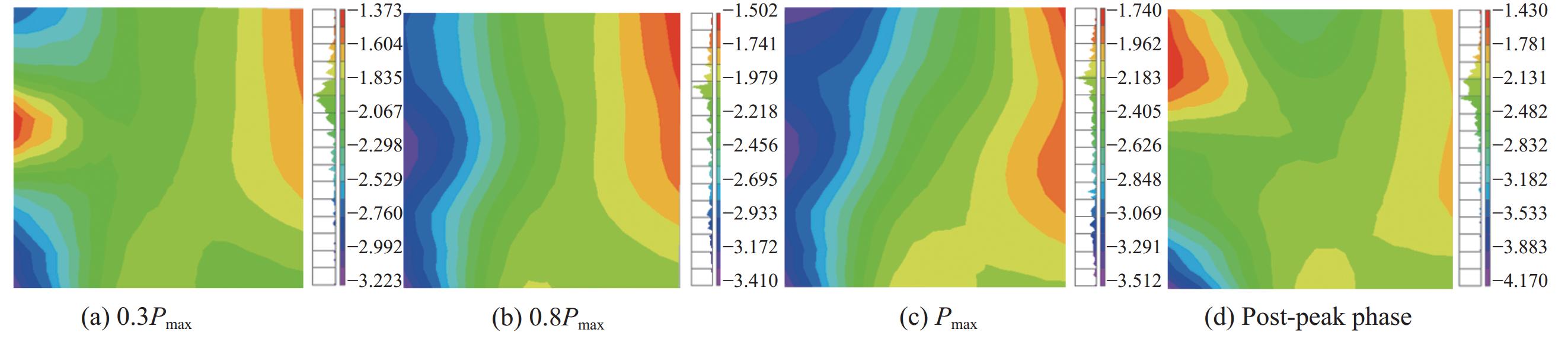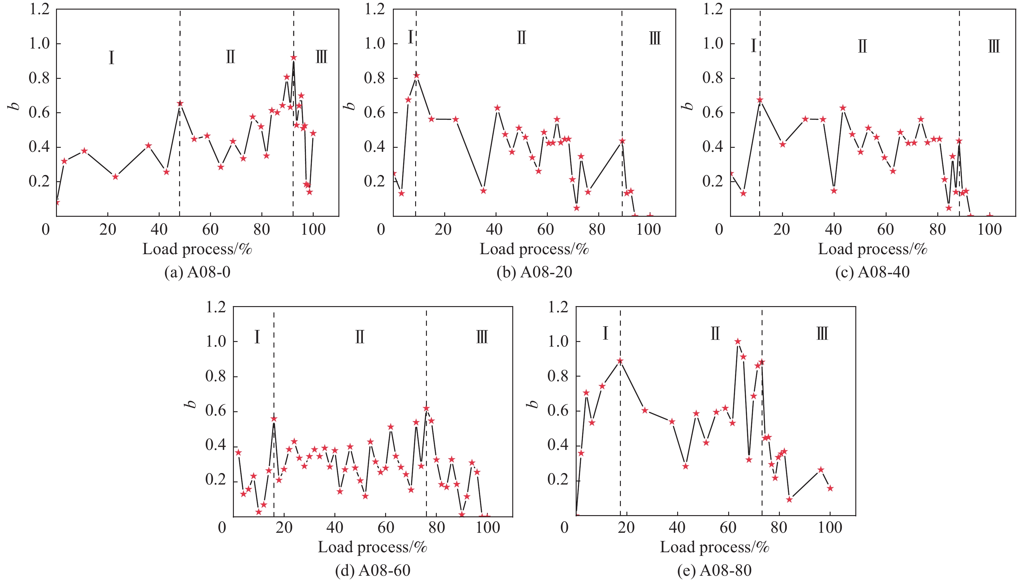 b-value appear in 92.3%, 89.1%, 88.5%, 76.5%, and 72.3% of the loading process, respectively. The freeze-thaw environment can promote the transition from tensile to shear damage in foam concrete, exacerbates the internal damage of foam concrete, and thus induces large-scale rupture phenomena within the material. The results of AE and DIC complement each other, and their combination contributes to a comprehensive understanding of the developmental pattern of microcracks and damage mechanisms in foam concrete.